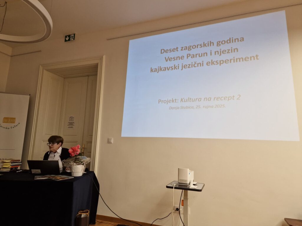 U svom je predavanju Vlasta Horvatić Gmaz donijela osoban i izrazito emotivan pogled na razdoblje koje je pjesnikinja provela u Zagorju, s posebnim naglaskom na njezin eksperiment s kajkavskim jezikom. Večer su dodatno obogatila sjećanja onih koji su Vesnu osobno poznavali, isprepletena pričama i anegdotama iz Stubičkih Toplica – gdje je, unatoč životnim izazovima, Vesna zadržala svoju poznatu vedrinu, duhovitost i posebnu sklonost intimnim, šaljivim posvetama.